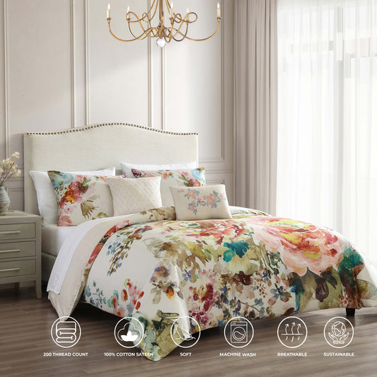 Bebejan Antique Flowers Ivory 5-Piece Reversible Comforter Set