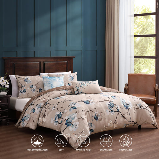 Bebejan Blue Blossom 5 Piece Reversible Comforter Set
