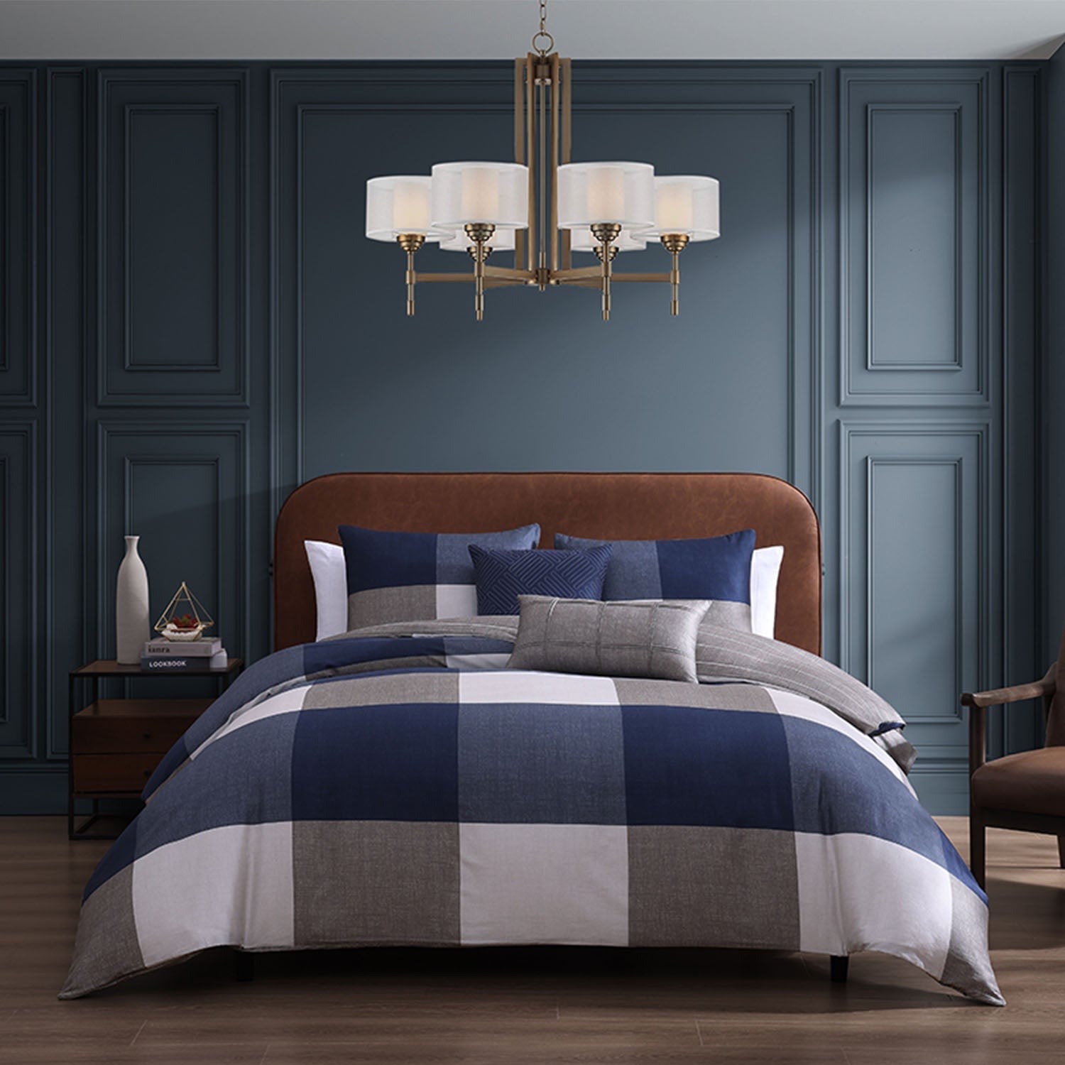 Bebejan Checkered Navy Tan 5 Piece Reversible Comforter Set