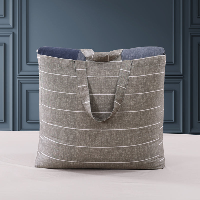 - Comforter Reverse: Classic printed pinstripe in fabric-textured tan on the reverse